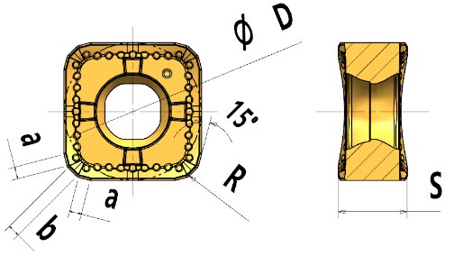Двухсторонняя пластина с 8 режущими кромками для фрезы R45ASN12