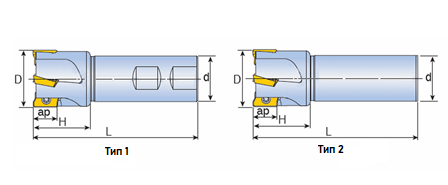Концевая фреза с углом в плане 90°, для пластин APKT.